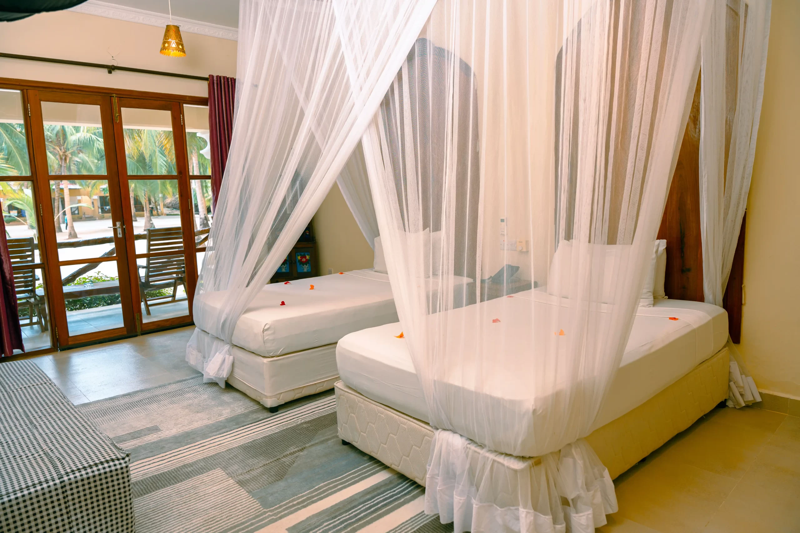 - Amenities: AC, coffee & tea kettle, digital safe, dryer, flat iron, Gardens view, Mini fridge, shower